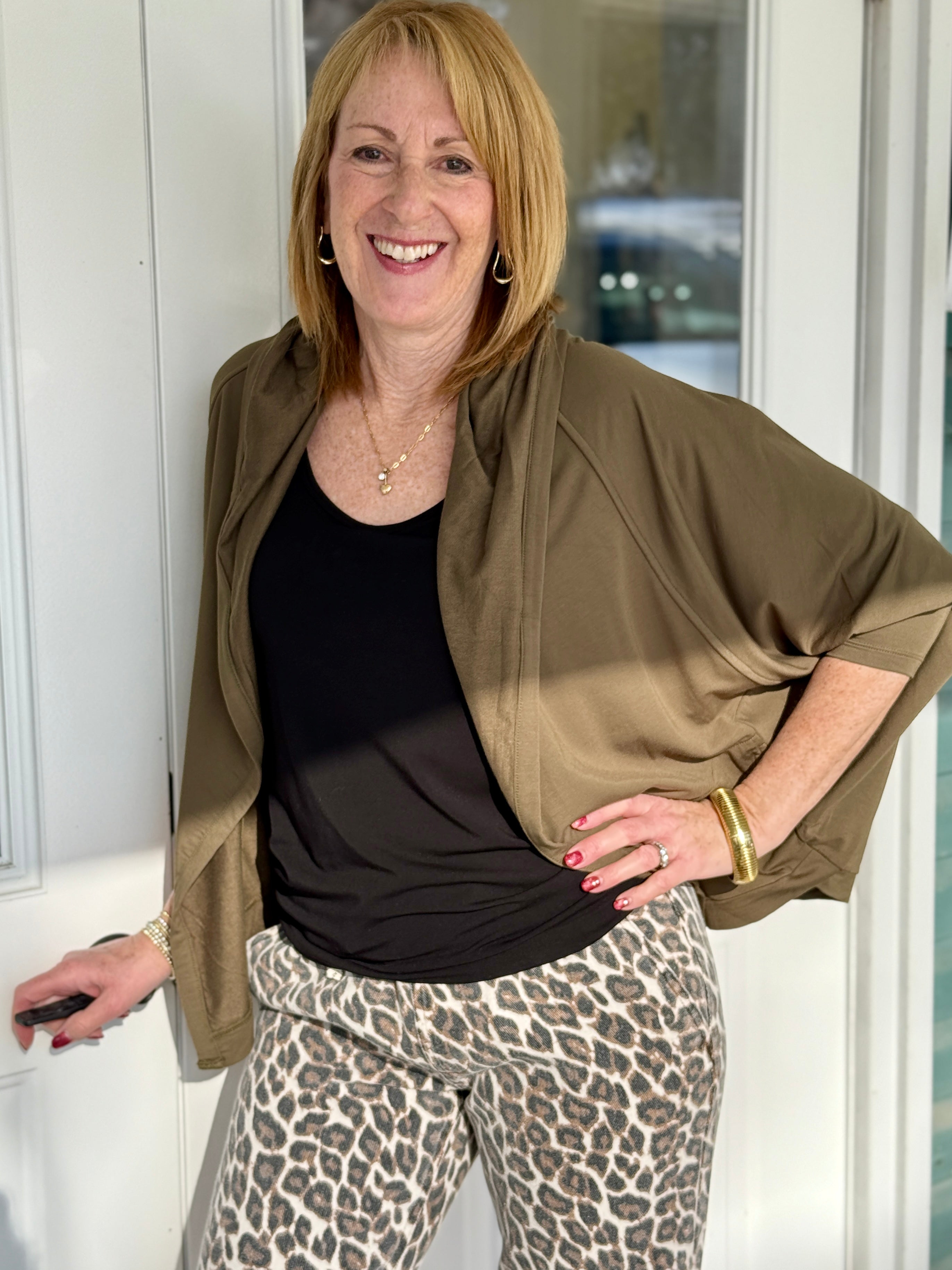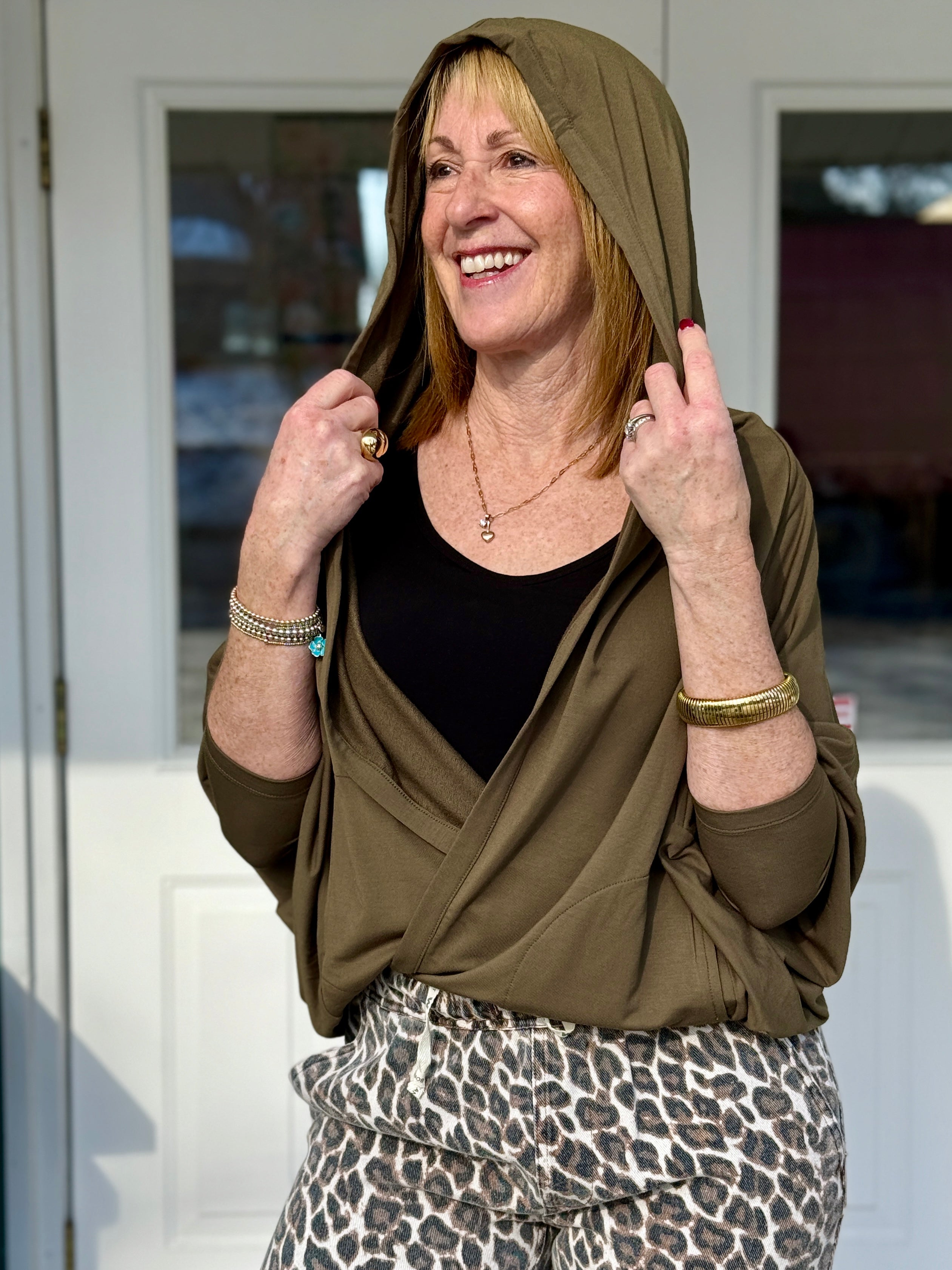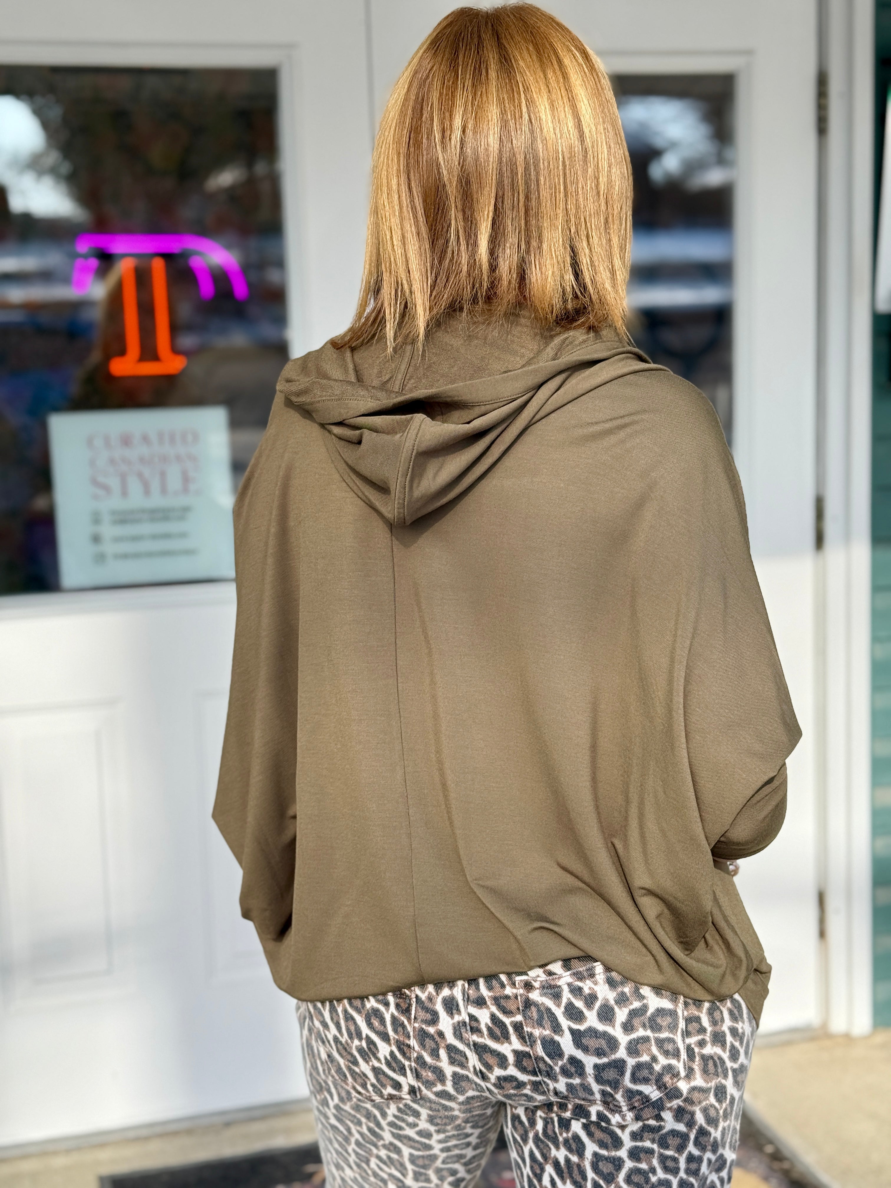 The Jaime Bamboo Hooded Cardi is the definition of easy, throw-on-and-go style. Made from lightweight, breathable bamboo, this cardi gives you just enough coverage without the heat — perfect for layering through changing seasons. The flattering seaming adds quiet shape (nothing boxy here), while the hood and pockets keep it practical in the best everyday way. It’s the piece you grab for running errands, lounging at home, travel days, and those “I want to be comfy but still look pulled together” moments. Soft, drapey, and endlessly wearable.