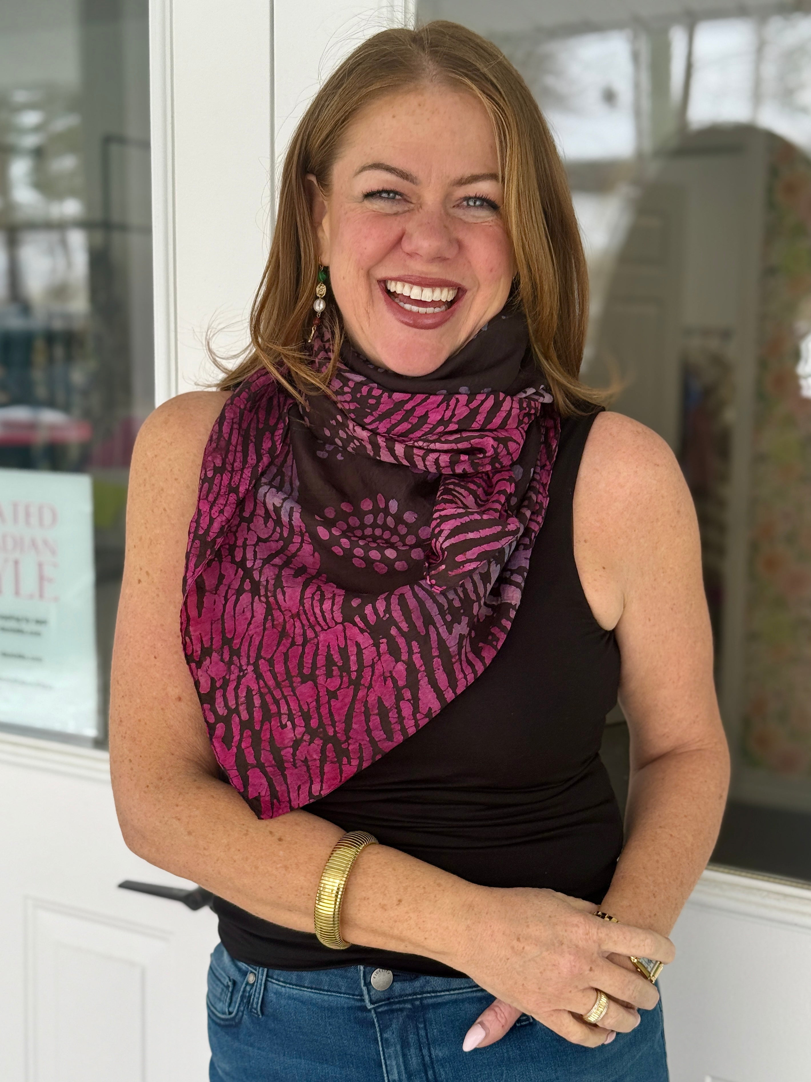 The Sea Urchin style in tones of mocha and berry pairs beautifully with your favourite neutrals. Its flowy, feather-light drape makes it perfect to style with your look and an be worn around the neck, used to accessorize your bag, or even a swim cover up.