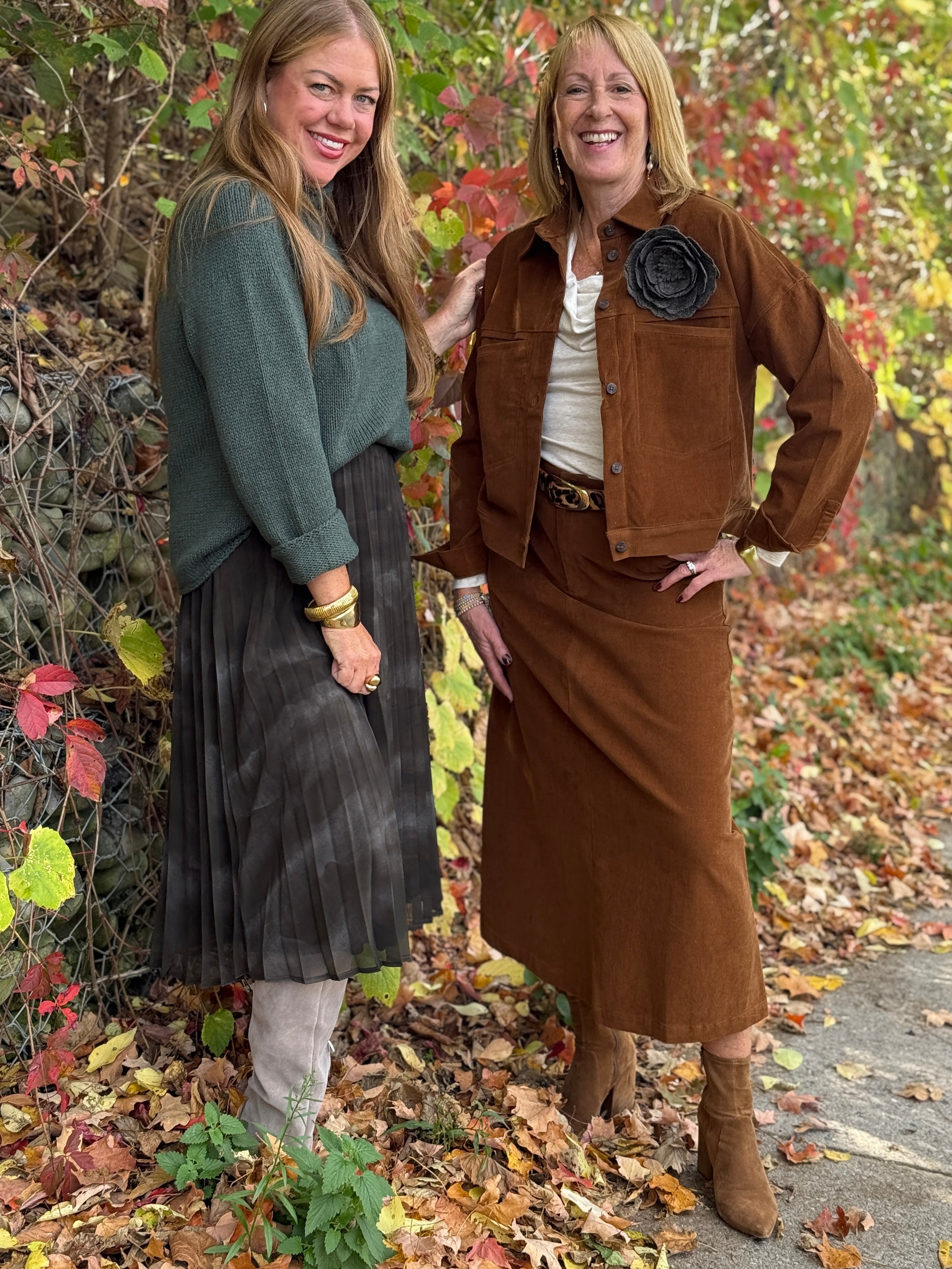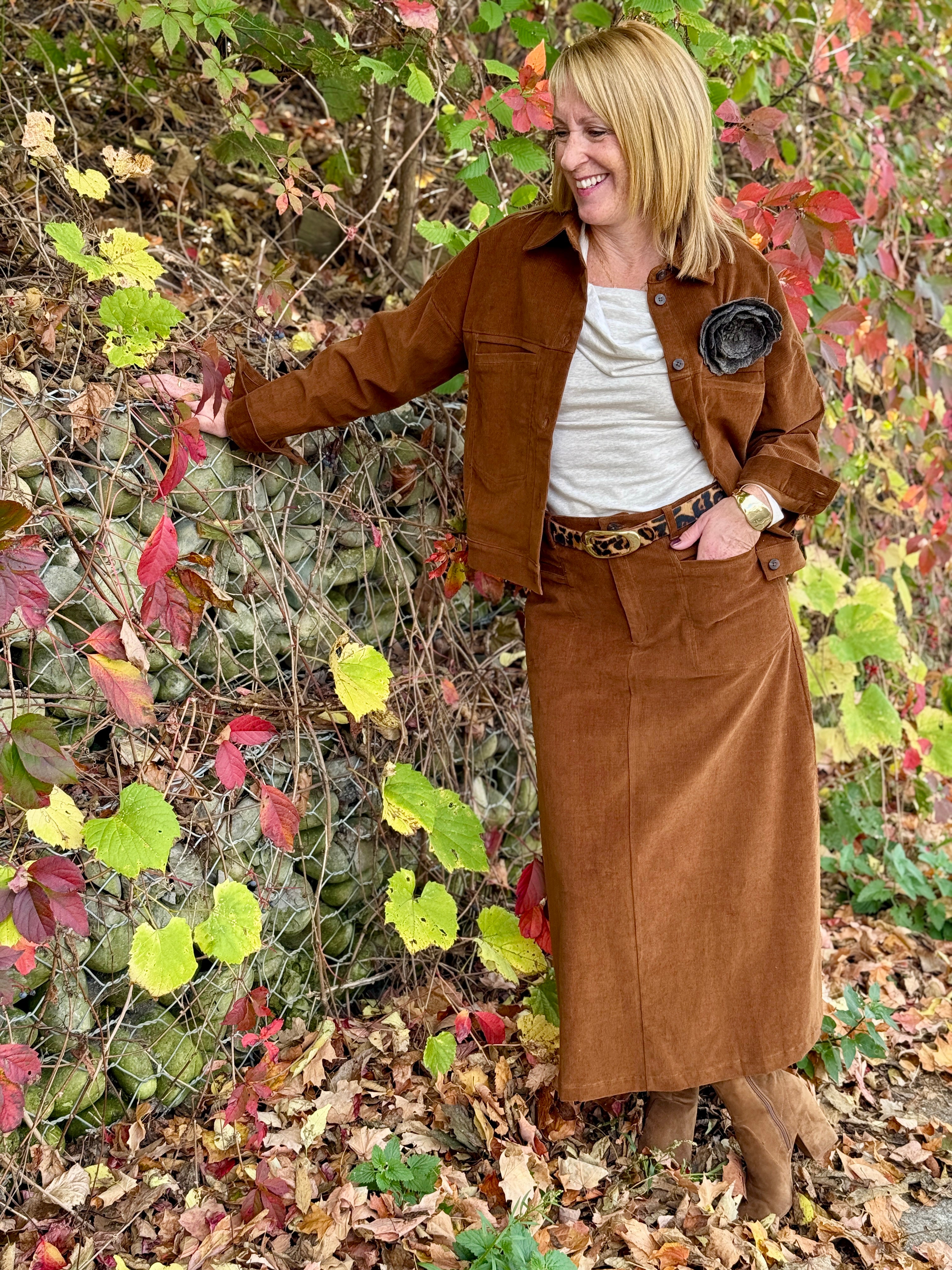 Meet your fall essential with a twist — the Jinni Skirt. Cut in a soft cotton-spandex fine cord, it strikes the perfect balance between structure and comfort. With its midi length and front patch pockets, this skirt brings a hint of utility-inspired edge to your cool-weather wardrobe. Dress it up with a crisp shirt or down with a chunky sweater and boots — either way, it’s instant fall polish. Pair it with the coordinating Sefina Jacket for that effortlessly chic matching-set moment, or wear it solo for a look that’s cozy, confident, and ready for anything autumn throws your way.