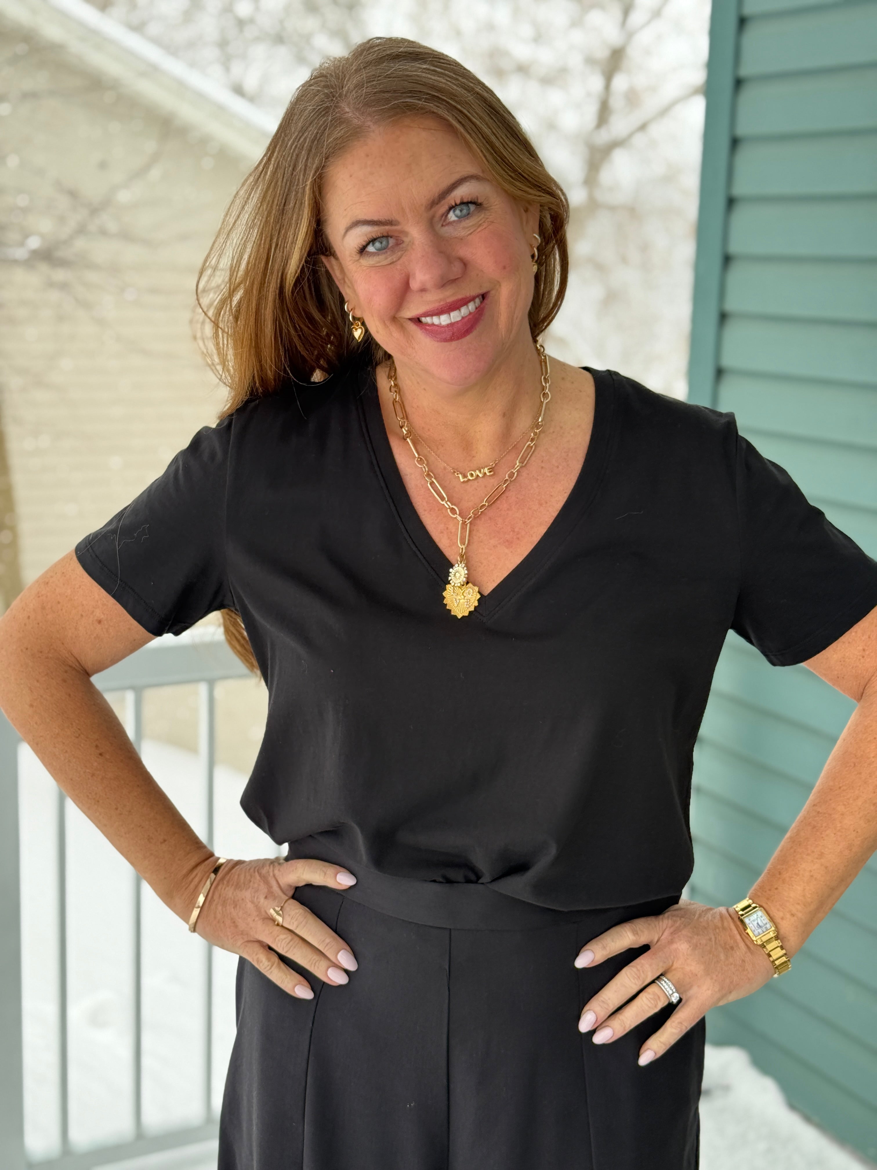 January calls for a tshirt refresh and whether you wear it solo on warmer days or layered under cardigans and jackets, the perfect V-neck in 100% cotton is an easy way to look polished and fresh. Classic in cut and to the hip (for easy tucks), this is a closet standout done well by Vancouver's Gentle Fawn.