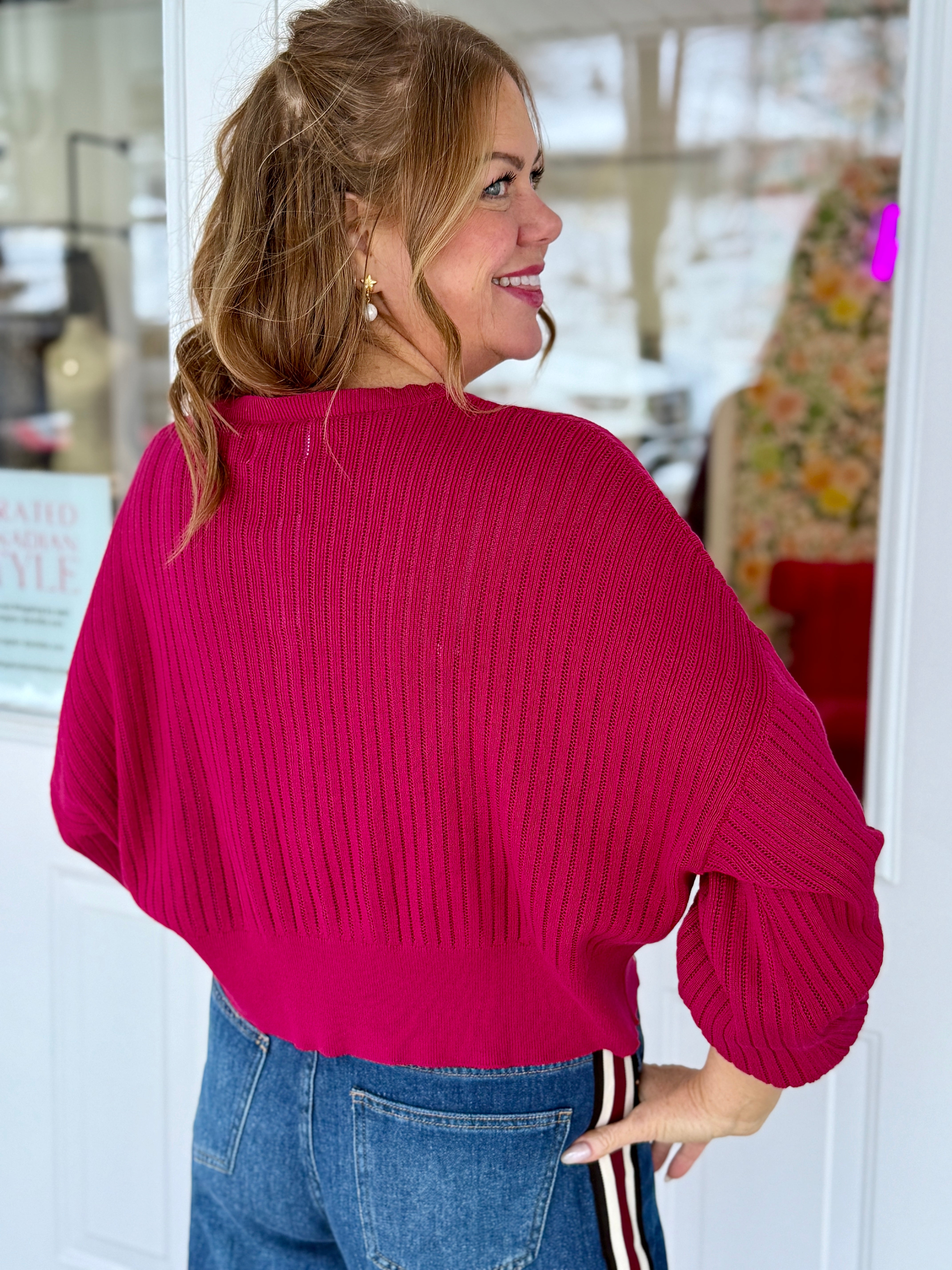 NEW Canadian brand Weslynn seeks to produce the absolute best that sustainable fashion has to offer and Sara is a great start! This relaxed fit cardi features an elongating vertical knit and functional tonal pearl button front. It's made of 100% organic cotton so it's sustainable, light, breathable and ideal for layering or wearing solo. But what we love most is that rich berry tone! What a colour to usher in good vibes for 2026. Paired with the NEW Weslynn cargo joggers in either leopard or olive she's a cool, casual look but don't be afraid to wear her with your fave trouser too.