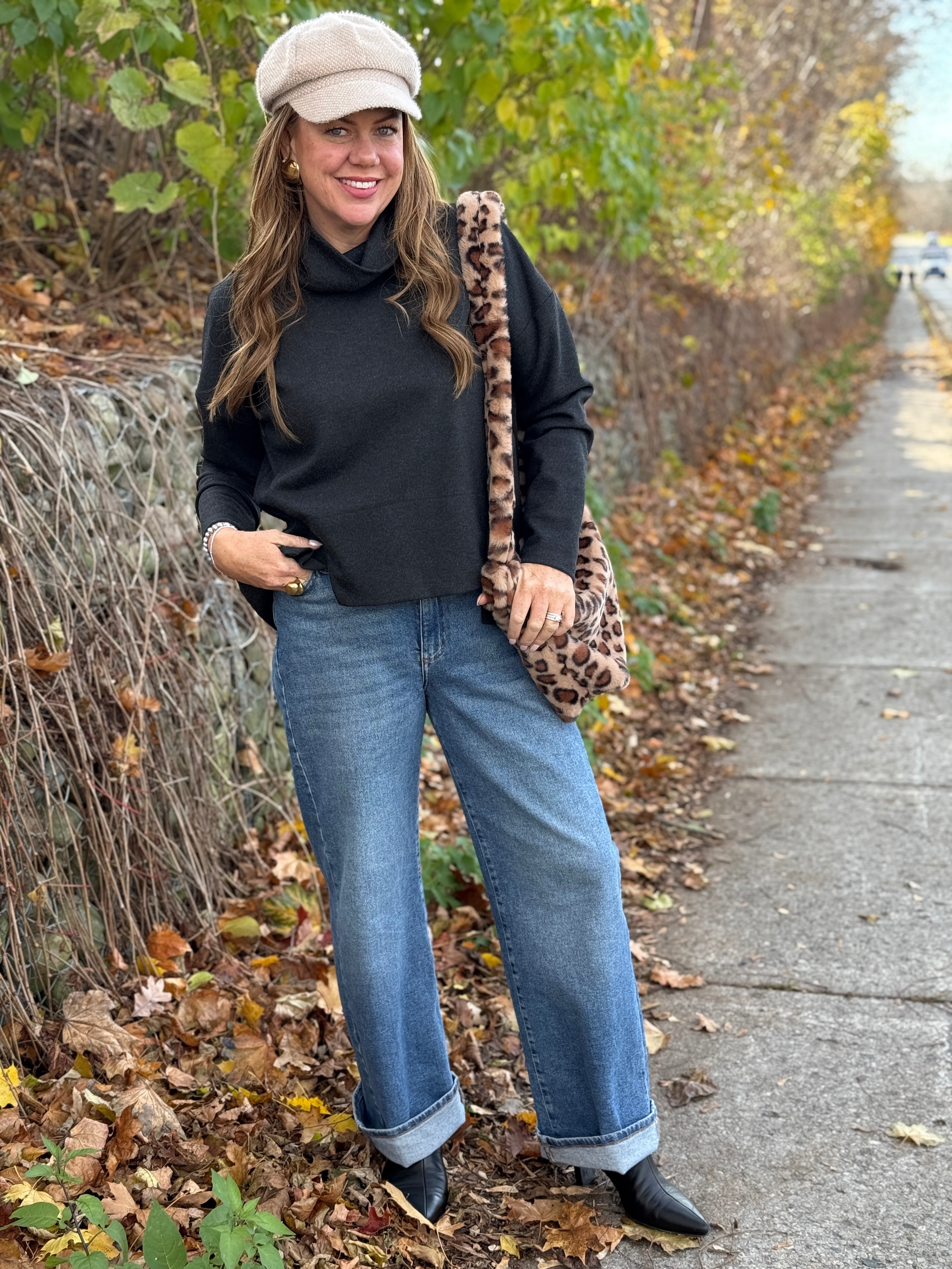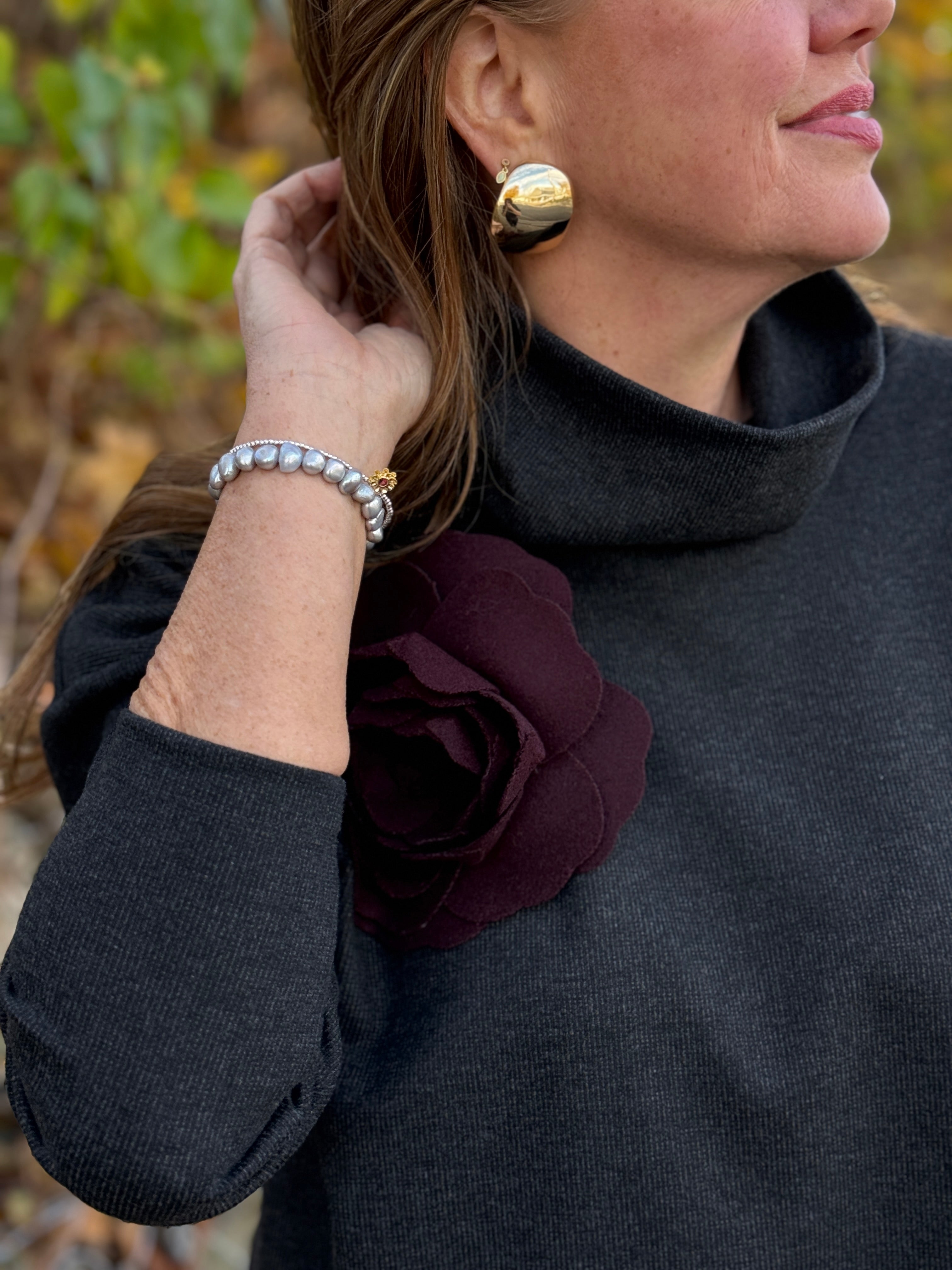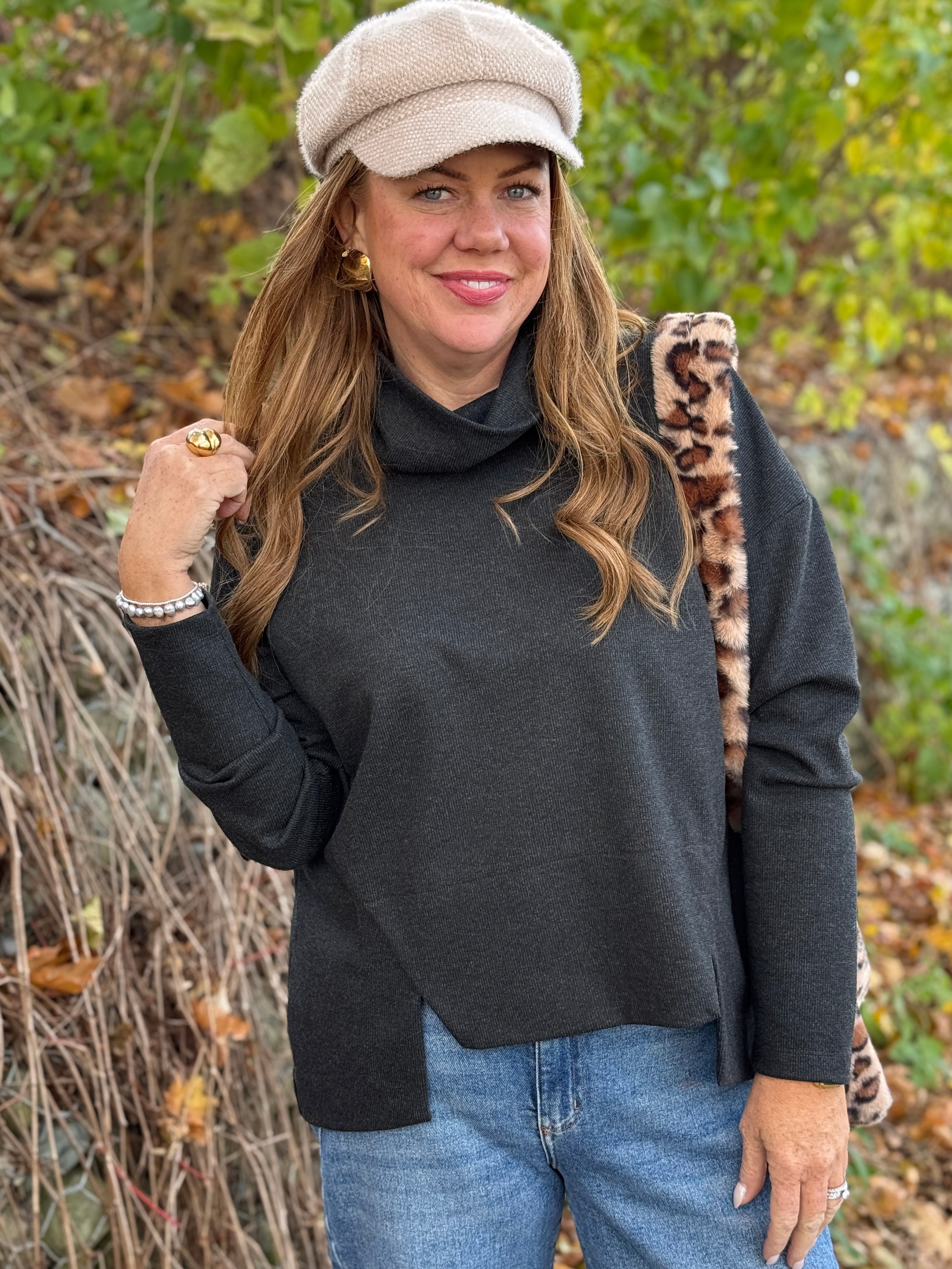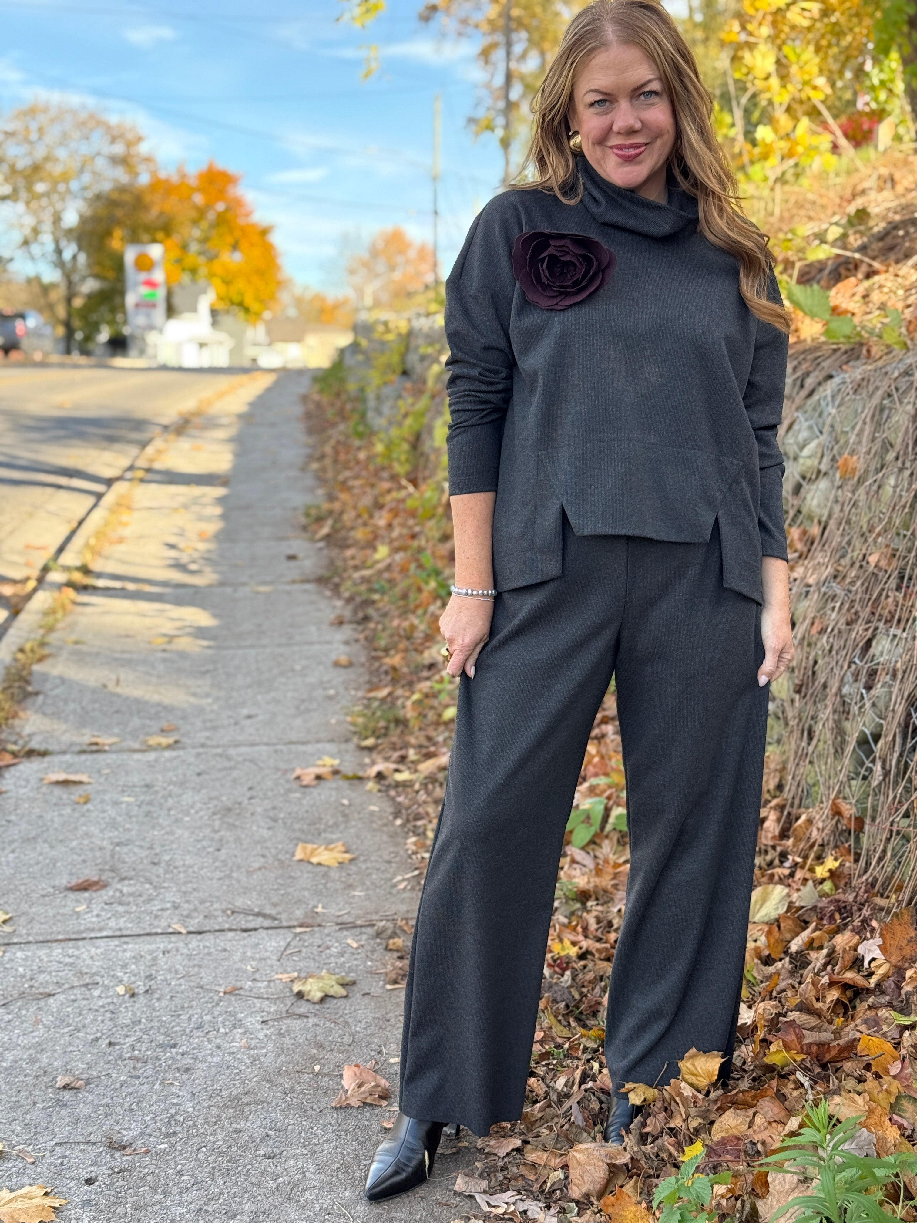 The Balmoral Sweater by Bodybag by Jude is your go-to for easy sophistication. In a soft charcoal grey knit, this relaxed-fitting sweater features a modern funnel neck and subtle cut-out hem details that give it just the right edge. Effortless and cozy, it pairs perfectly with the matching Skye Pant for a sleek coordinated look—or simply with your favourite jeans for relaxed, everyday chic.