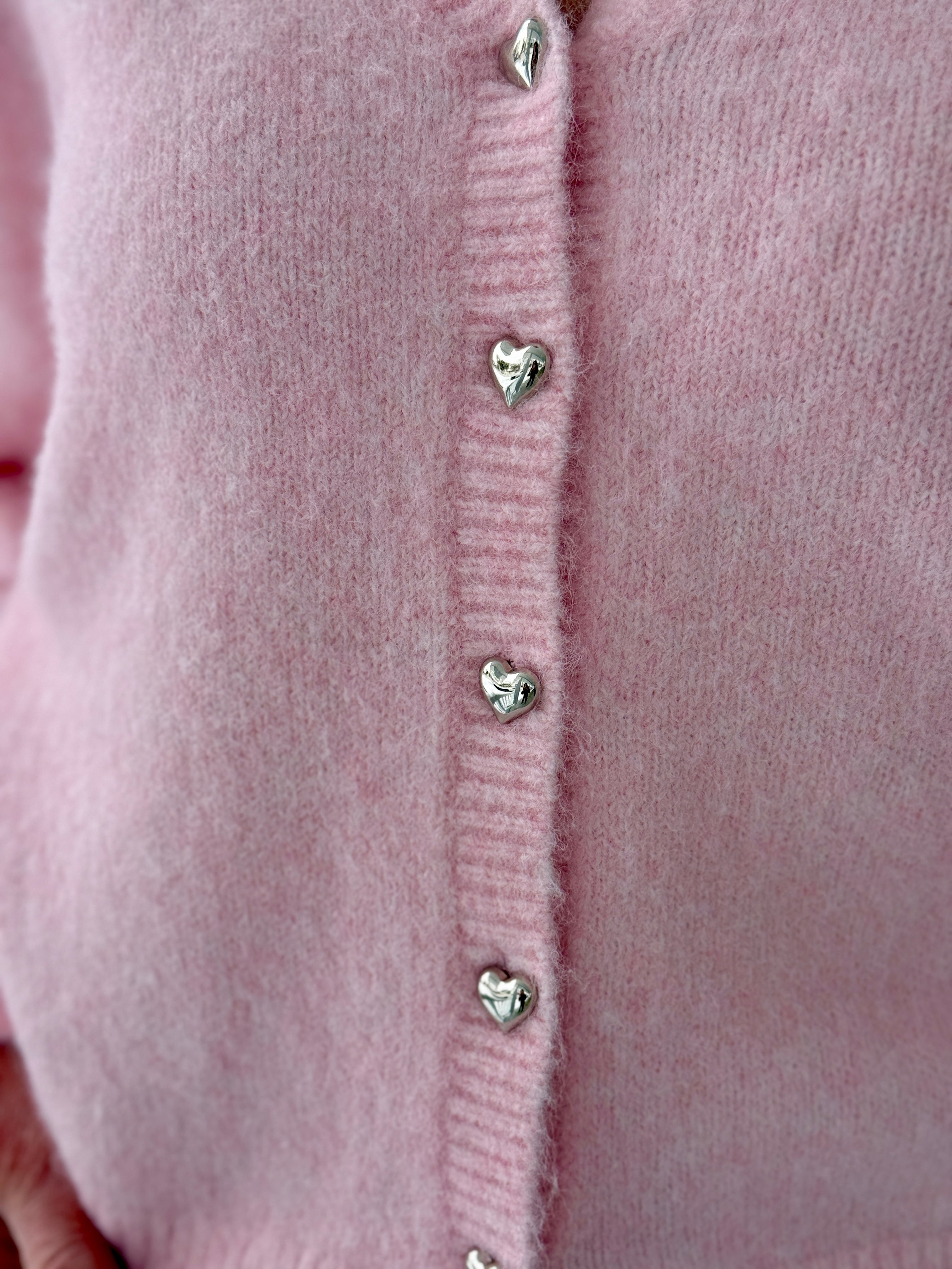 Cue the heart eyes. The Valentina Cardigan is officially the sweetest layer of the season — now in the softest shade of pink you’ll ever meet. Crafted from the coziest knit blend, this is the kind of cardigan you’ll reach for morning to night — warm, snug, and impossibly cute. Valentina is designed with a relaxed fit and gathered shoulders for that perfectly slouchy-meets-flattering shape, then finished with ribbed cuffs to keep it polished. And the detail we’re obsessed with? Silver heart-shaped buttons. Style it buttoned up, layered over a tee, or draped over your shoulders.