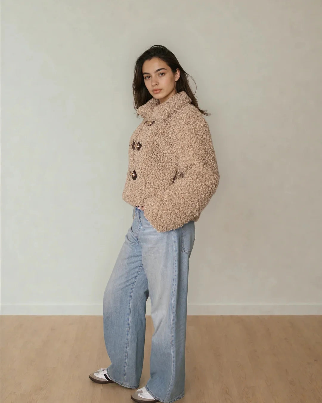 There's just something about this cozy little number by Priv that feels elevated and chic yet it's so comfy & cozy - the perfect combination! The faux sherpa is ultra-soft and warm, the gold toggles on chocolate brown vegan leather are fun, functional and detailed and the whole look is great with everything from jeans to skirts. Waist-length and furry, this jacket is 10/10 on adorable and 10/10 on cozy - all at great value for money. (Tip - this makes a great gift too!)