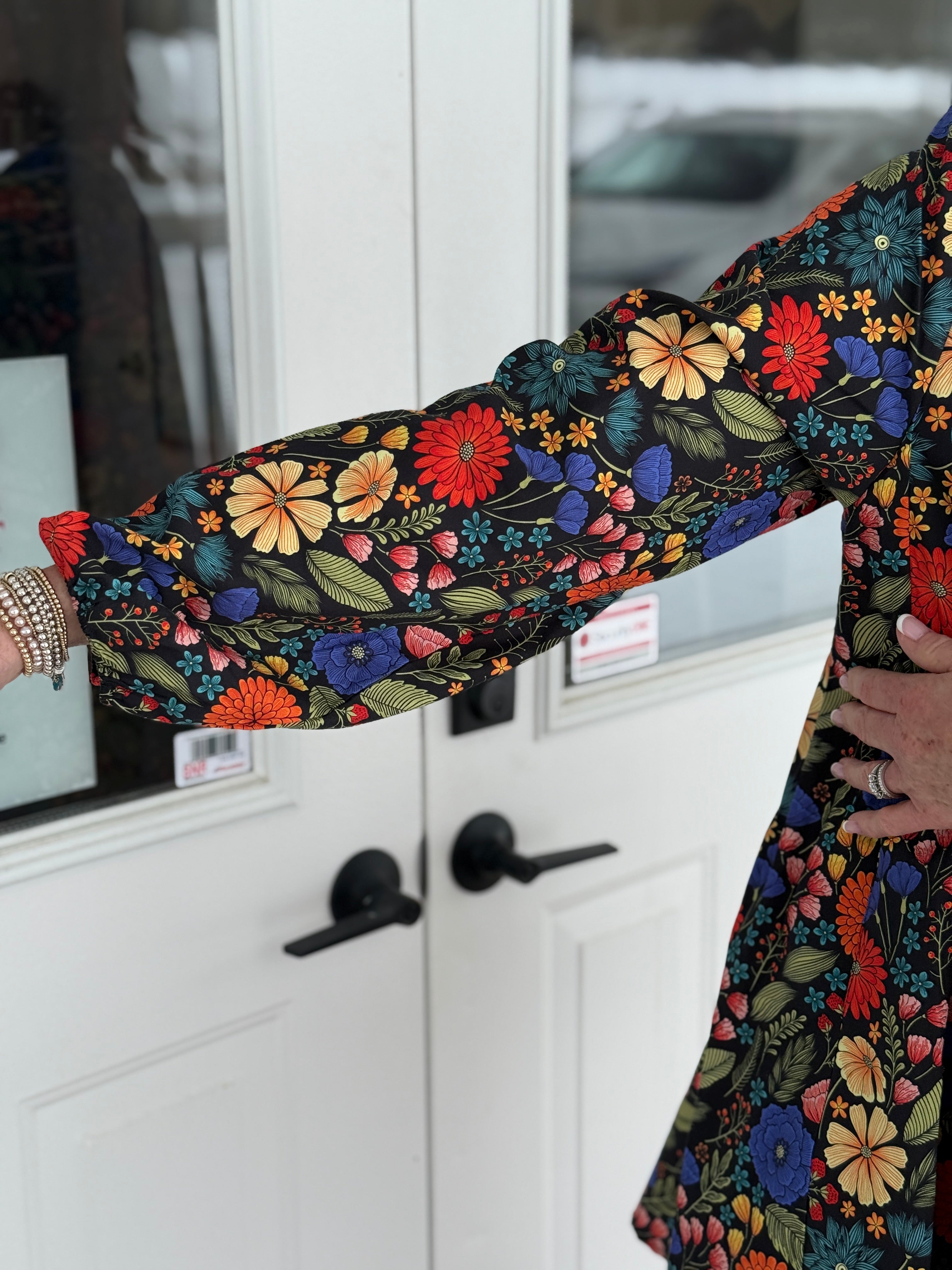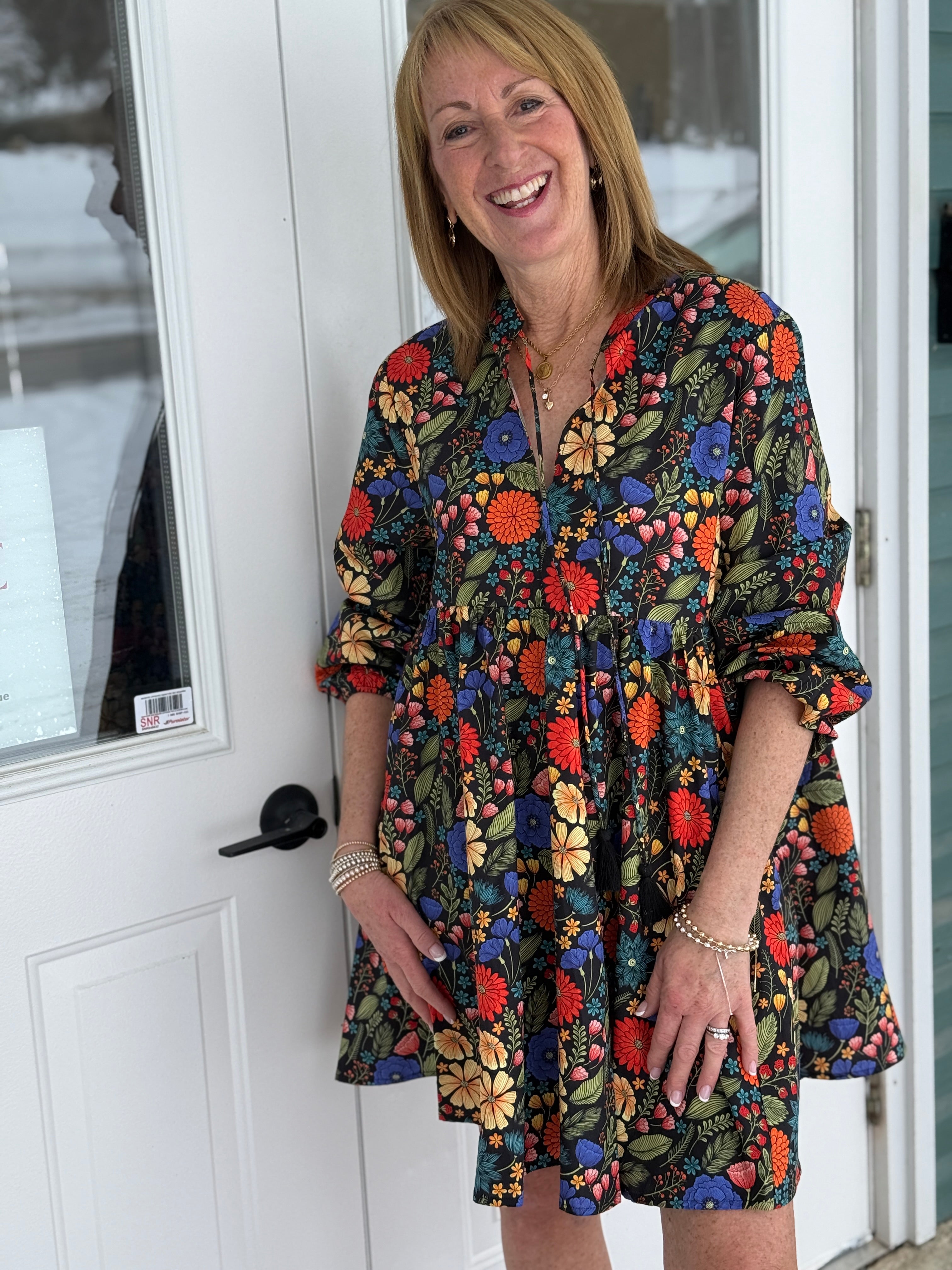 This is the dress you reach for when your mood says relaxed but your style says unforgettable. The Floral Boho Mini features Poplin & Co’s signature custom hand drawn print in vibrant, joy-filled colour, all on breathable 100% cotton that feels as good as it looks. Designed in a flattering mid-thigh A-line silhouette, it features a soft V-neck with a black tassel tie for that effortless boho touch. The long sleeves are finished with elastic cuffs so you can push them up and get on with your day. And yes, it has front pockets. It’s easy, breezy, and full of personality. Pair it with sneakers for daytime errands or boots for a little edge. However you style it, this one brings the pop of colour your spring wardrobe has been waiting for.
