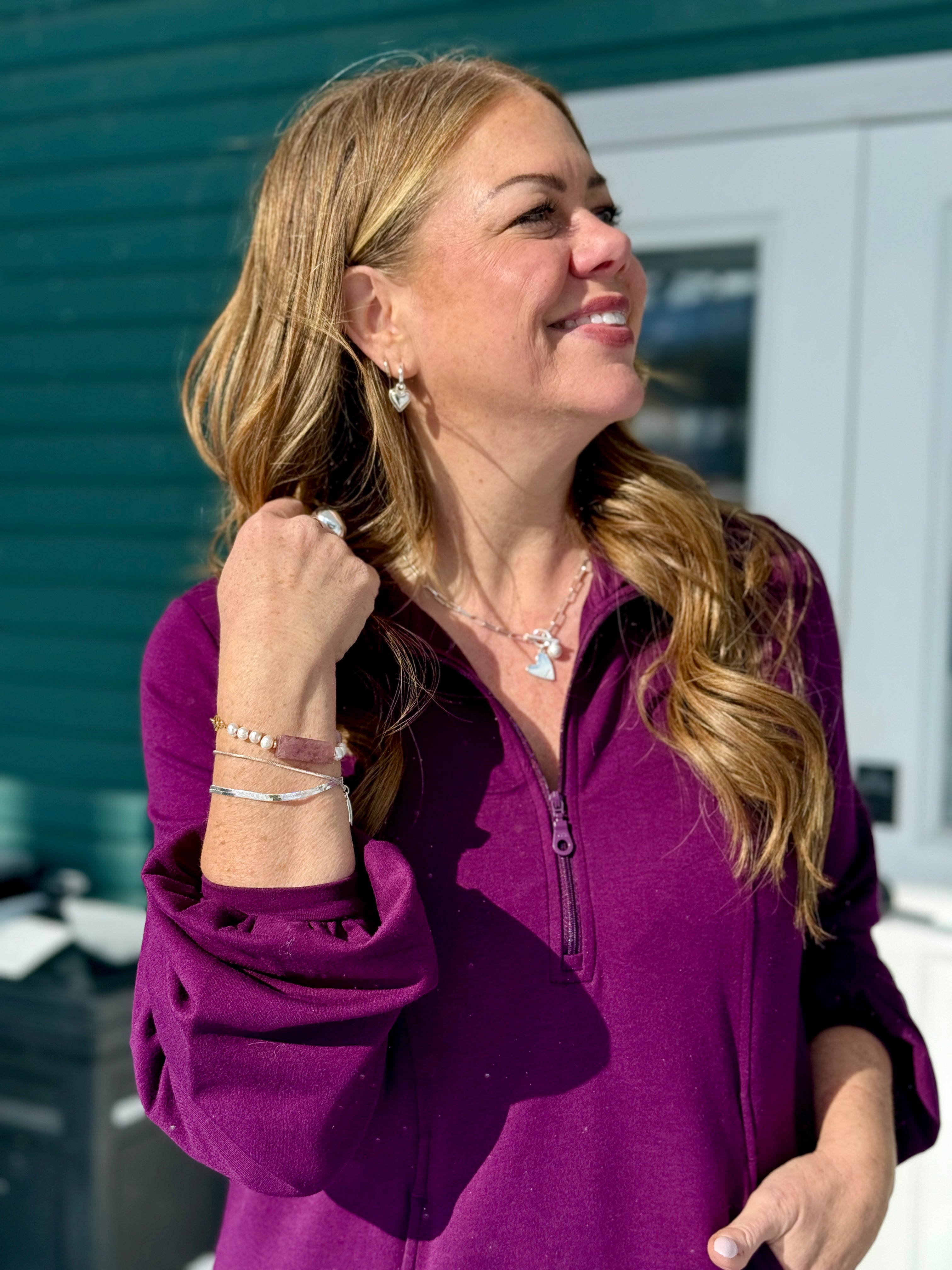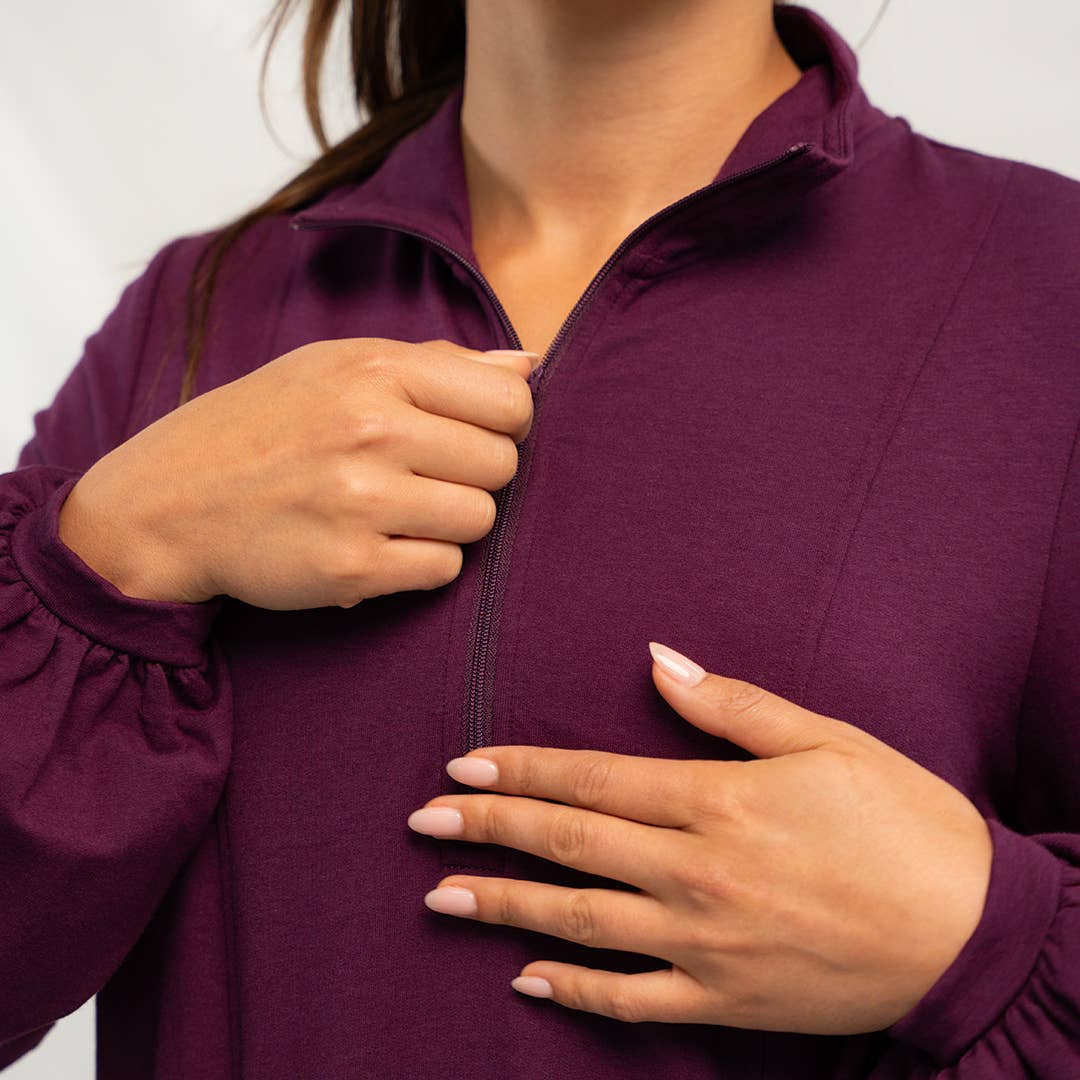 Cozy up in chic comfort with the Valentina Balloon Sleeve Sweater Dress, made from luxuriously soft brushed bamboo French terry fabric. Featuring a flowy A-line silhouette in a brilliant Italian Plum colour, this dress flatters with ease while offering all-day comfort. The statement balloon sleeves add gentle drama and movement, while a mock neck and half-zip detail give it a modern, elevated touch. This bamboo sweater dress layers beautifully with tights/leggings and boots or stands alone for effortless winter style.