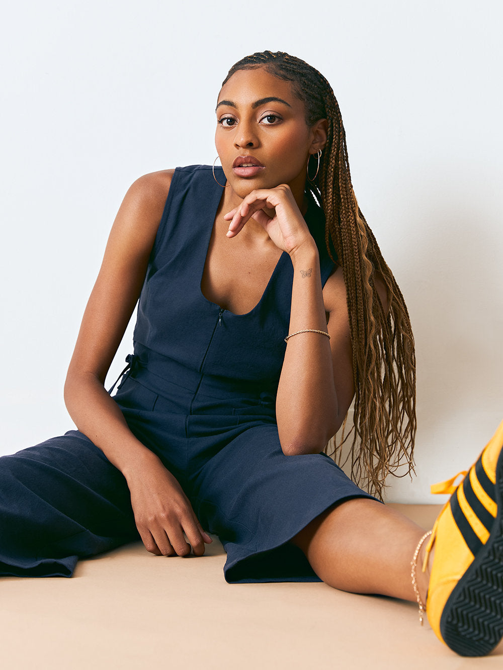 One-and-done, and done very well. The Allan Jumpsuit by Dagg & Stacey is your effortless answer to getting dressed. Crafted in a soft, pre-washed stretch linen with a beautiful hand feel, it moves with you while keeping its shape (a rare and wonderful combination). Designed with a flattering scooped neckline and a sleeveless silhouette, it features a wide leg cut and a 26" inseam for that easy, modern drape. The adjustable self-tie belt and waist ties let you cinch it in just how you like, while front patch pockets keep it practical. Finished with a clean, centre front invisible zipper, this is the piece you’ll wear on repeat, from casual days to dressed-up dinners with just a switch of shoes. Polished, comfortable, and quietly confident.