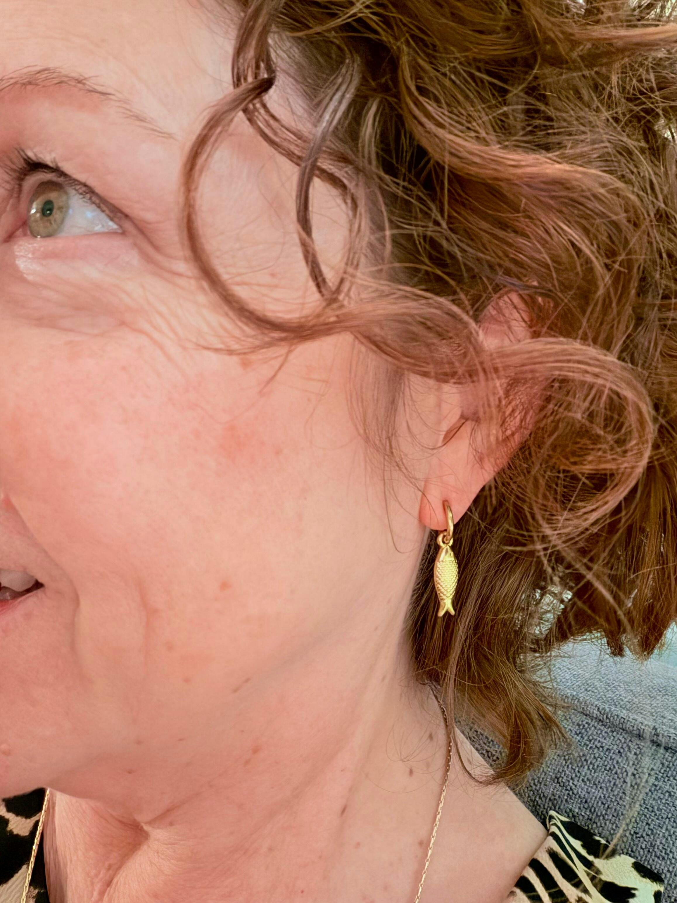 What's the coolest motif right now? Yep, SARDINES! All the rage in everything from accessories to home decor, sardines are fun, novel and truly chic. Add them to a huggie earring and they're simply too cool for school (of fish - get it?)