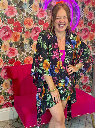 • Luxe kimono with side ties offering the ability to style in multiple ways over swim and streetwear.