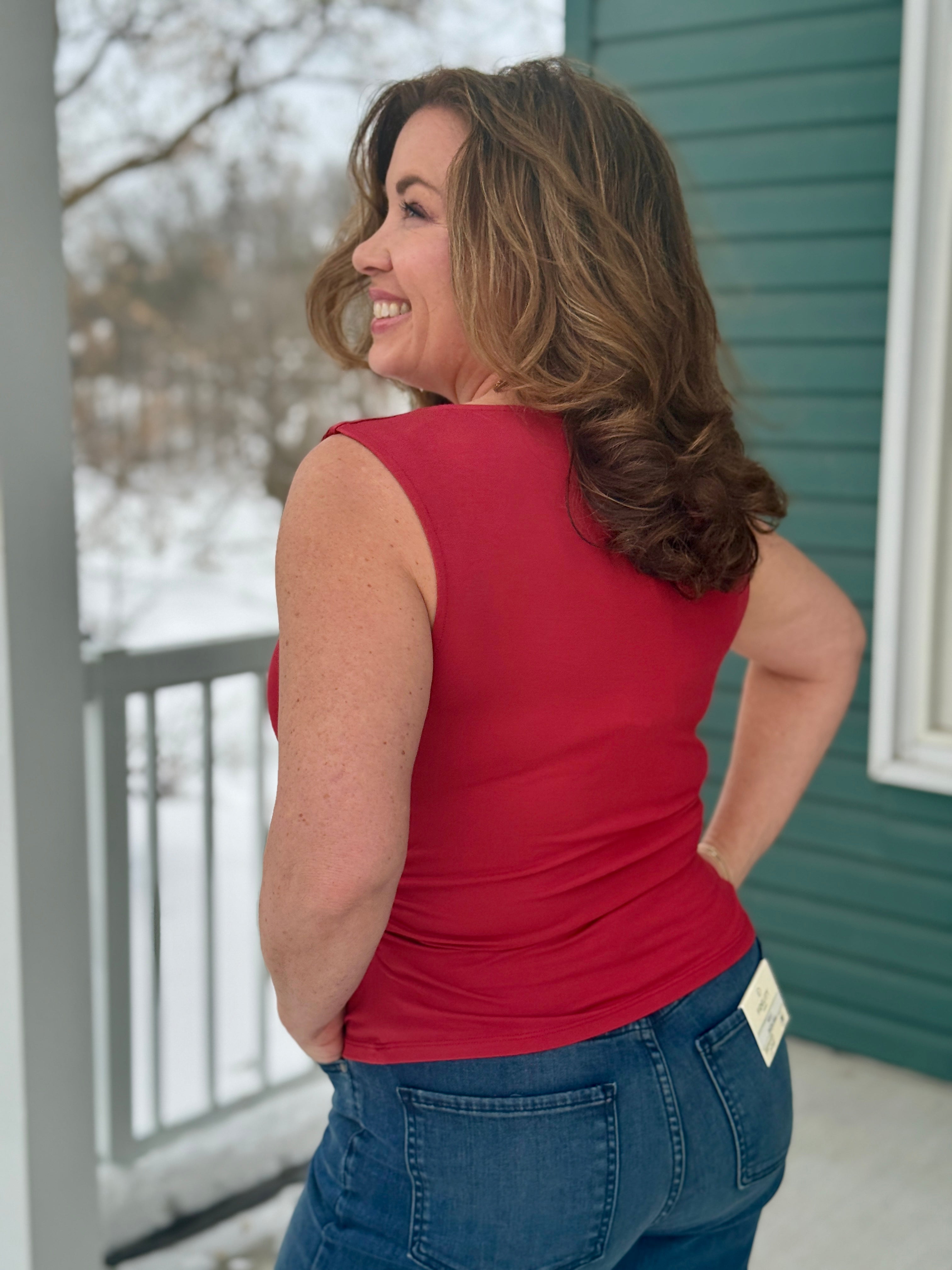 The Cassidy Top by Gentle Fawn is one of those quiet heroes you’ll wonder how you lived without. Made from ultra-soft modal, it drapes beautifully with a flattering neckline that feels feminine without trying too hard. The ruched sides subtly shape the body (hello, confidence boost) while staying completely bra-friendly — because real life. The rich paprika red colour is the moment this season, pairing effortlessly with mocha browns, classic denim, and everything in between. Easy to dress up, easy to dress down, and always comfortable.