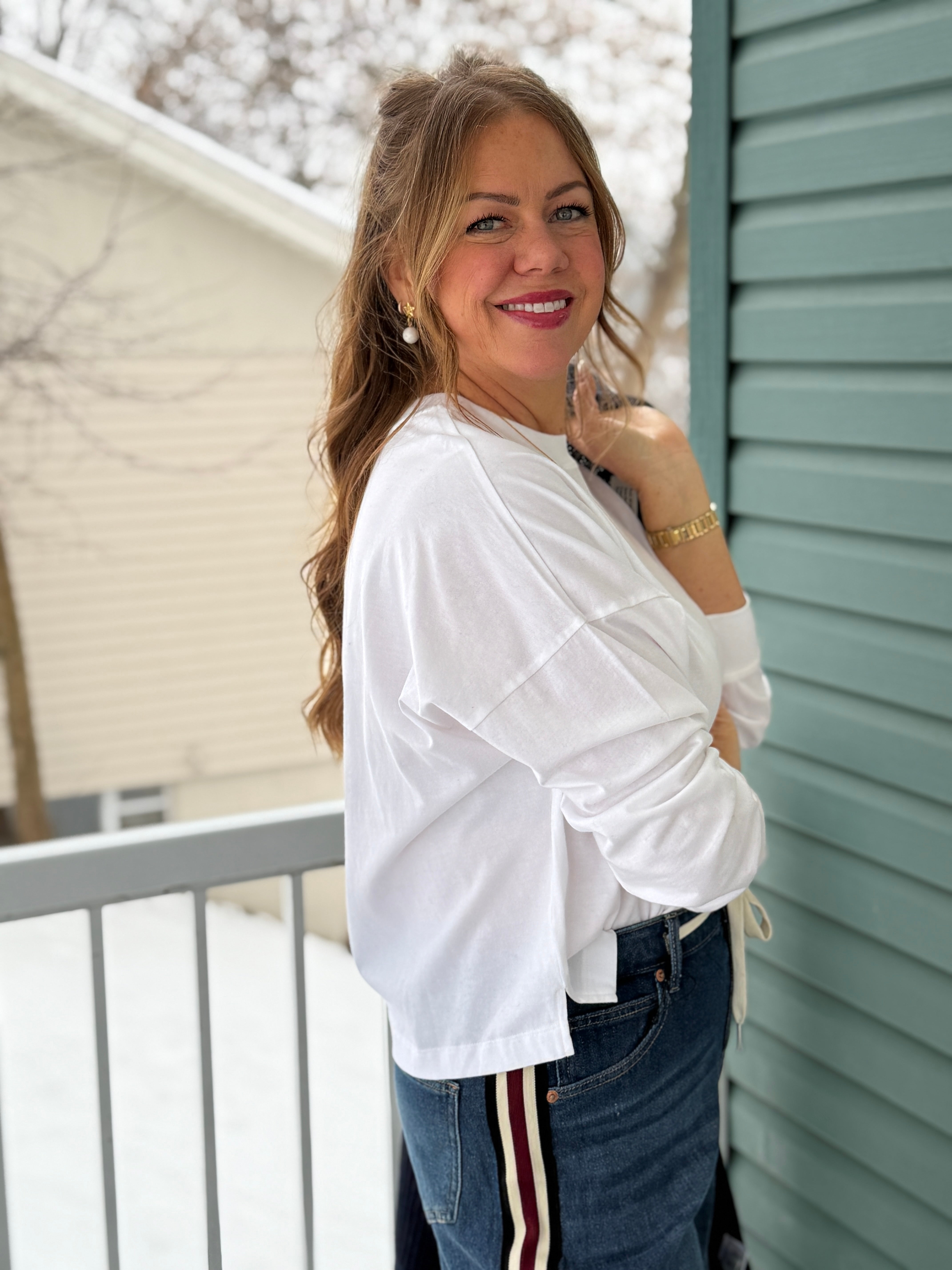 Meet the Christy Top — your quietly perfect long-sleeve tee. Designed with a classic crewneck, relaxed fit, and easy drop shoulders, this hip-length staple is the kind of piece you reach for on repeat. It layers beautifully under a cardigan or jacket, but is just as polished worn on its own. The clean blue colour feels pure, fresh, and just right for the January–March winter months — a little mood-lift for grey-sky days. Comfortable, effortless, and endlessly wearable, Christy is the definition of simple done well.