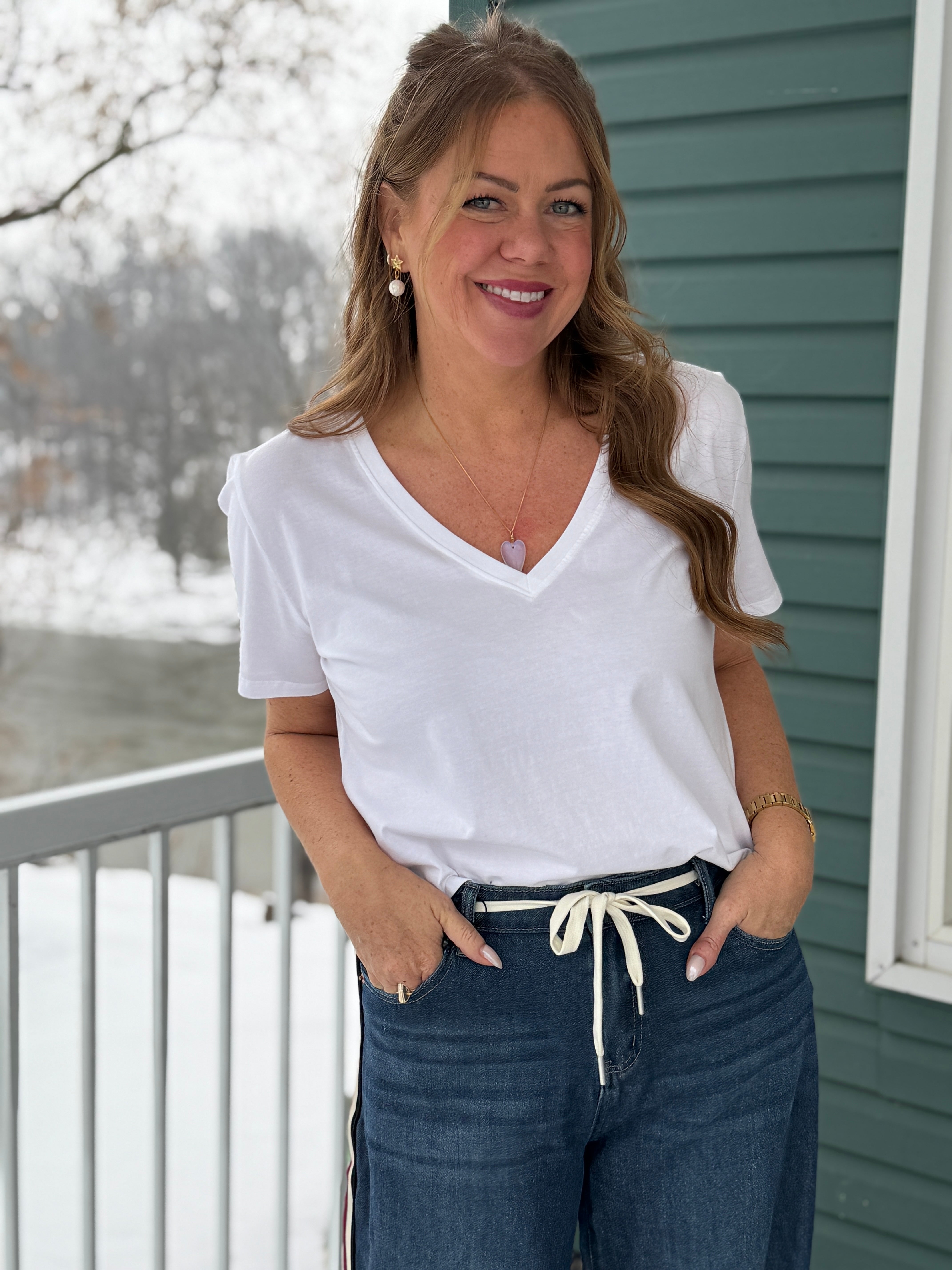 January calls for a tshirt refresh and whether you wear it solo on warmer days or layered under cardigans and jackets, the perfect V-neck in 100% cotton is an easy way to look polished and fresh. You'll love it paired with the on-trend Carina jean to pick up that white stripe, or anything really. Classic in cut and to the hip (for easy tucks), this is a closet standout done well by Vancouver's Gentle Fawn.