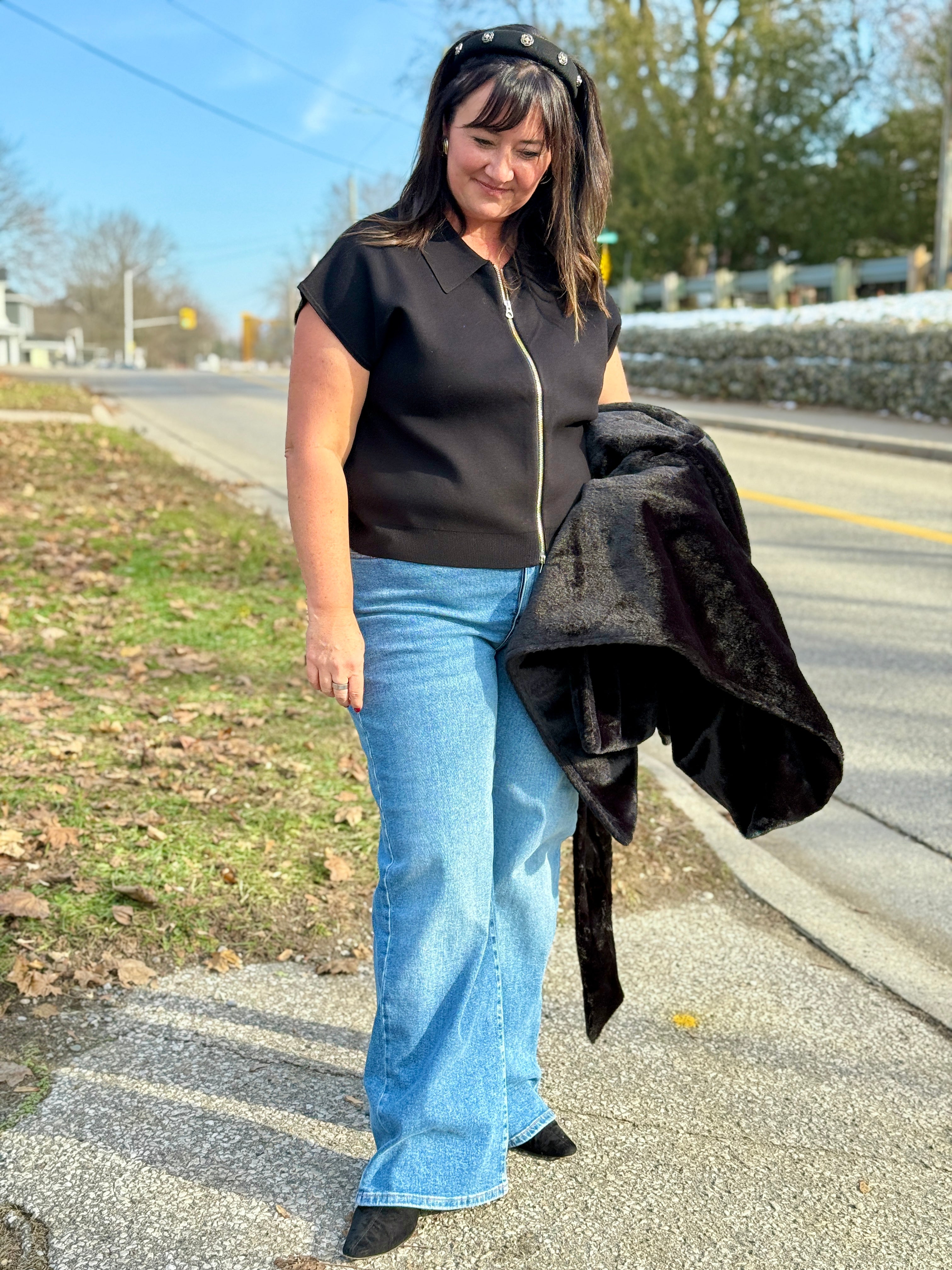Step into holiday ease with the Melissa Nepton Arlo Knit — a light, airy zip-up, crafted in a soft, breathable knit that won't overheat you. It features short sleeves and a sleek 2-way silver zipper that adds just the right touch of shine to your festive layering. Cool, effortless, and easy to style, it pairs perfectly with everything from your favourite jeans to luxe joggers, making it a go-to for holiday mornings, casual gatherings, or just curling up with a warm drink. Layer over a long sleeve tee for extra cozy.