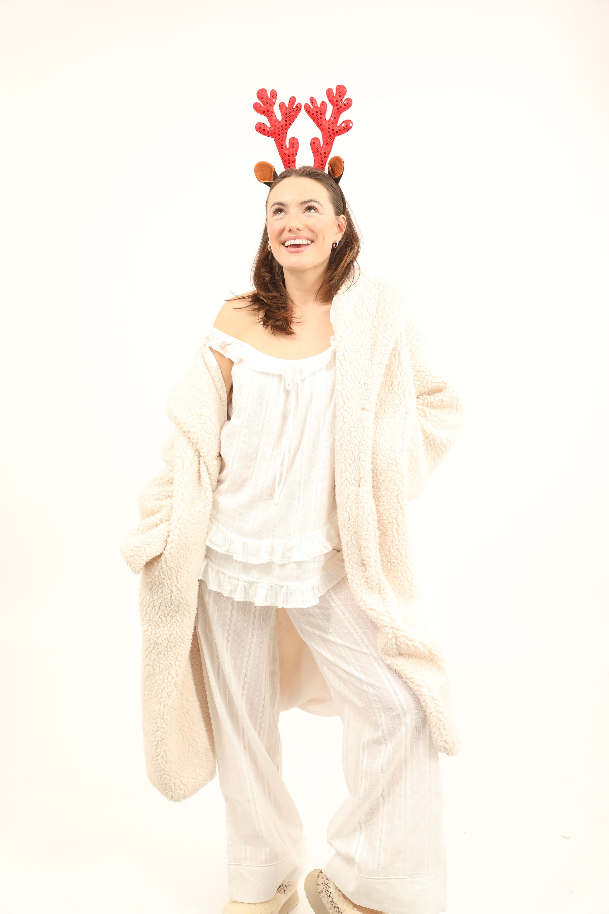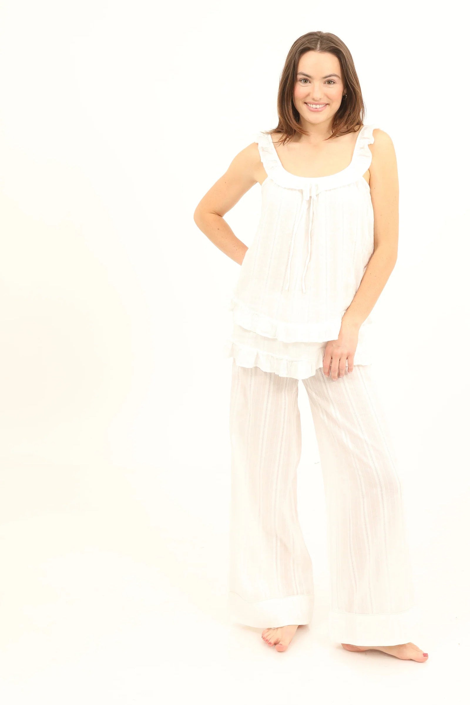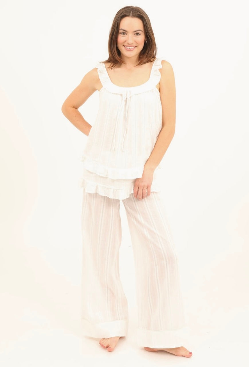 The Parlour Pant is Oui Lapine's best seller, so it might just be time to upgrade your sleep pant with a 100% breathable cotton version that is light and luxe and a little nostalgic. This wide leg, pull-on pant features a high, elasticized waist, and a vintage-inspired wide leg. Pair with your Parlour Jacket for a matching set.