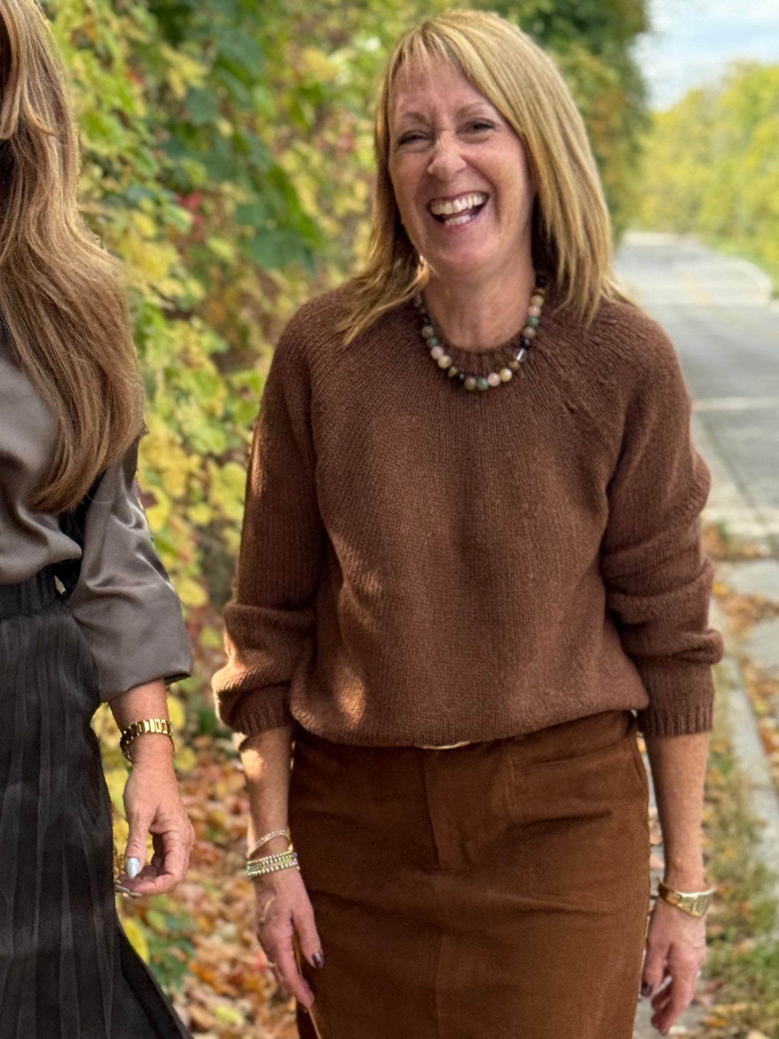 The Alliona Sweater is that perfect mix of laid-back and luxe — a crew neck pullover with raglan sleeves, ribbed edges, and the kind of buttery-soft hand feel you’ll reach for again and again. In a rich chestnut brown, it’s a timeless neutral that flatters everything from denim to skirts. Made from a cotton-cashmere blend, it’s lightweight yet cozy — the ultimate all-day comfort piece that still feels elevated. Hip-length and endlessly versatile, the Alliona is your sweater-weather essential… soft, chic, and ready for repeat wear.